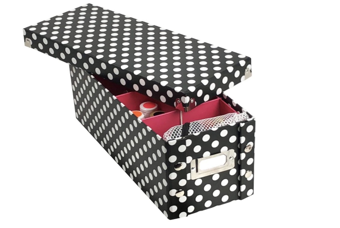 It’s almost too easy for your art supplies to completely take over the kitchen table, so why not toss everything into this little box instead? Adjustable dividers help you keep everything organized, and there’s even a label on the front so that you’ll always know what’s inside without having to open it up.