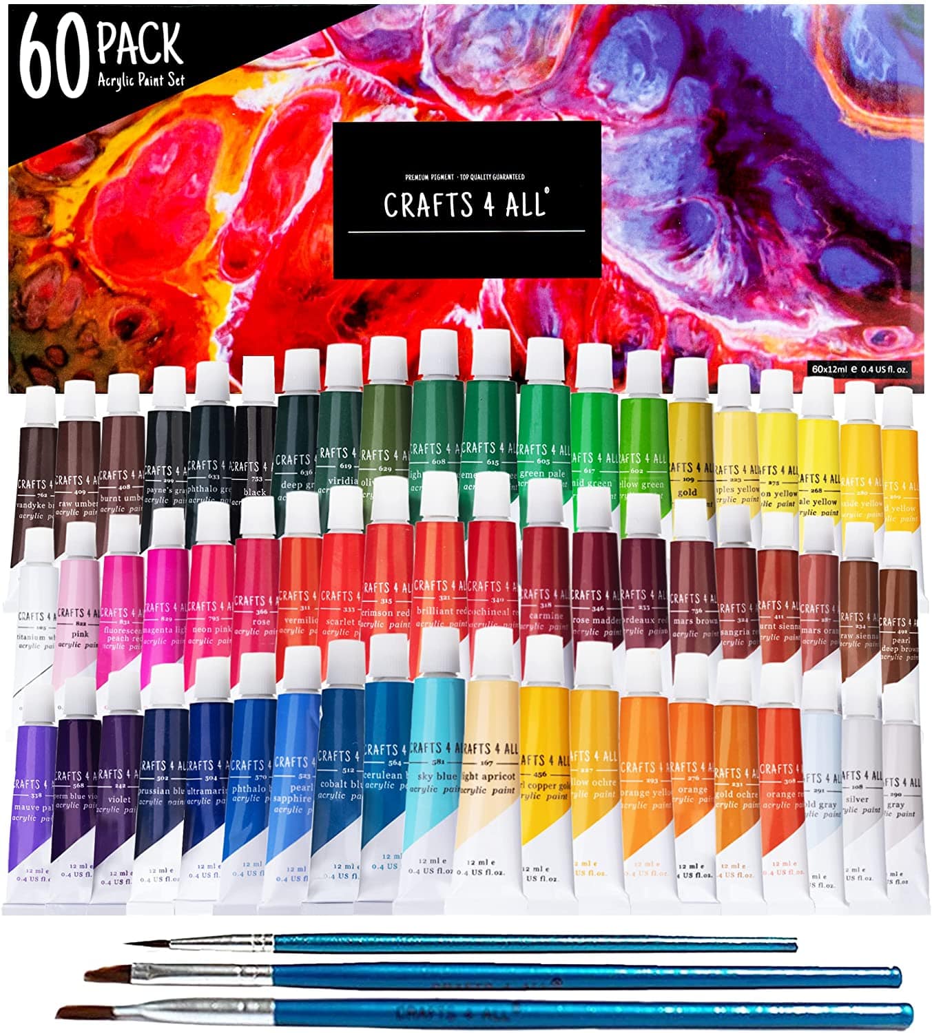 Not only does this acrylic paint set come with every color you could ever imagine, but they also dry quickly so that there’s very little risk of any smudging. They also blend easily so that you can customize your shades — and each order even includes three brushes to get you started.